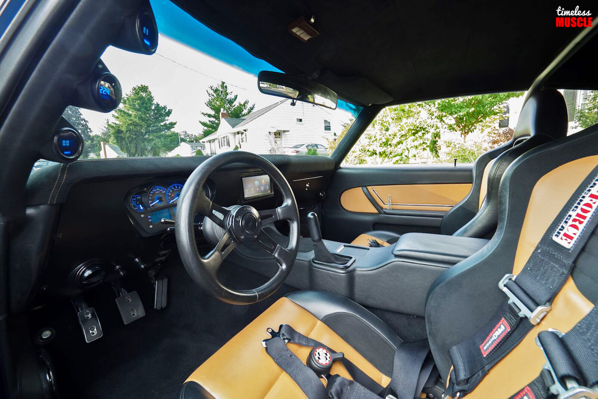 Custom heat-wrapped headers help expel spent gases form the engine, with 2-inch primaries into 3-inch exhaust and Magnaflow mufflers — all black ceramic coated. Mike Frumusa at New Era Performance in Rochester, NY handled the tuning duties, and his expertise lent the final tally numbers to be over 750 rwhp to the rear tires. A fortified T-56 transmission has since replaced the 200-4R since then.