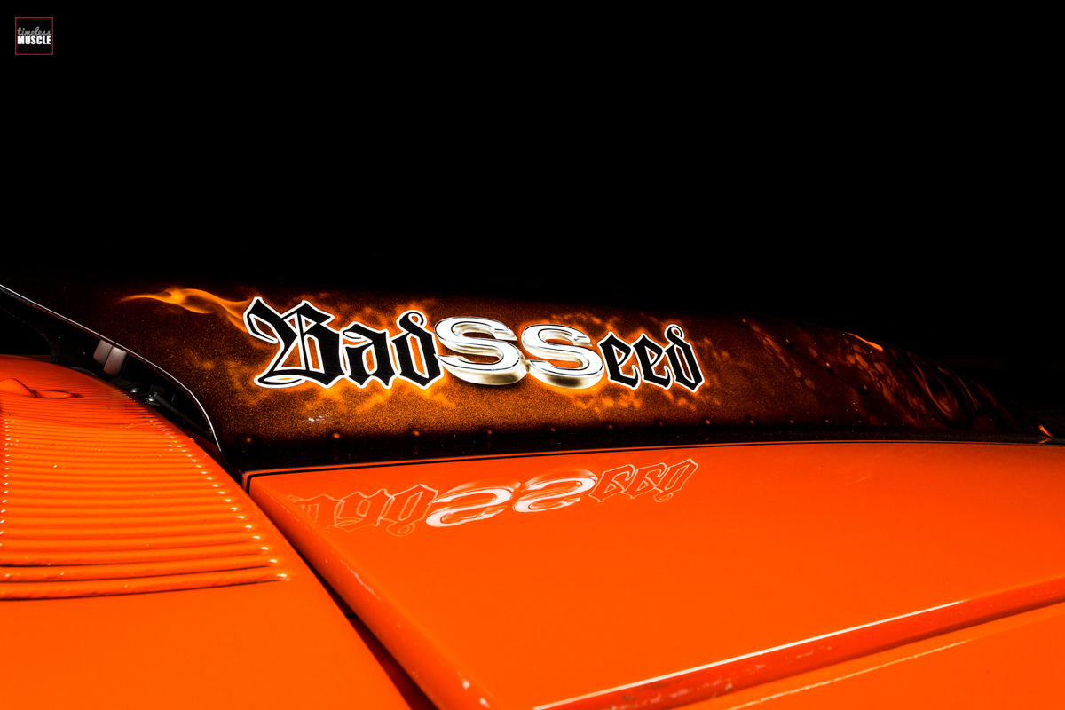 As for the eye-catching paint, Bob tells us the Hugger orange was applied in the ’80s. A local friend back in Ohio wanted to try a new paint on the market, and use Bob’s Chevelle as a guinea pig. Safe to say, the paint worked pretty well. Bob had Rich from Airphix in Roselle, Illinois do some graphics on the car to update the Chevelle’s look. The body is all stock, save for a Glasstek 6-inch cowl hood, and a recently added Spoilers by Randy front spoiler.